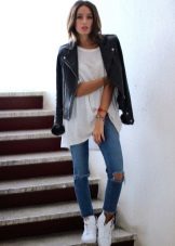 Thanks to comfort, accessibility and versatility white sneakers everyone can have in their wardrobe. They can be combined with many informal styles and with the help of them make an effective touch in the image. Of course, the exception is strict office bows, which always require elegant shoes as their shoes.