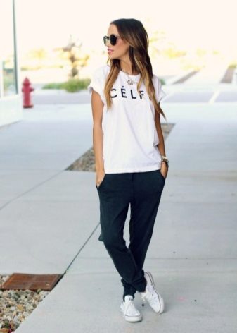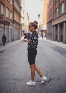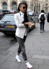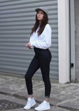 The first thing you should pay attention to is the combination of white sneakers with a sporty style. First of all, you need to pay attention to the texture of sportswear, so as not to look like you just left the training room. A casual tracksuit should be made of more expensive fabrics, should not fit the silhouette, and the lines should be more smooth and free.
