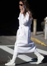 There are some age restrictions. Creative youth can now afford to wear white sneakers even with tuxedos and chiffon skirts. Simple white sneakers in some extraordinary bows really look trendy. But with age, it is better to leave these experiments young and give preference to the familiar combination of sneakers with casual style clothes.