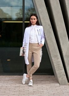 Recently, a model of sneakers, stylized as sneakers, has gained popularity. Due to more classic lines and wearing comfort, this model allows you to combine it with different everyday bows, including pantsuits. White color in these models is the most versatile and in demand among buyers.