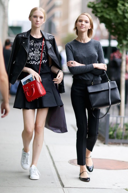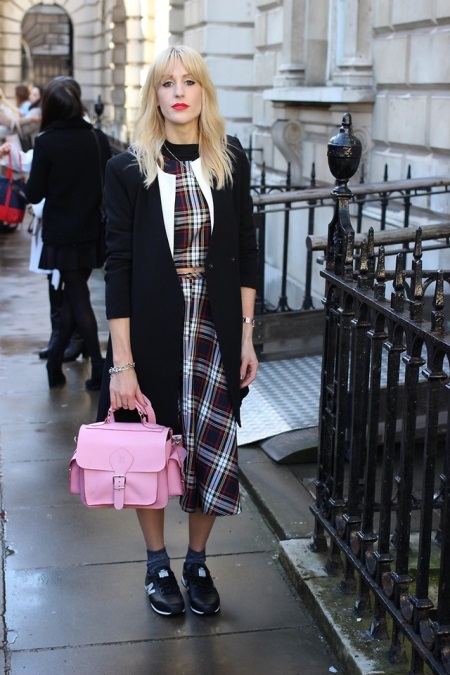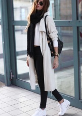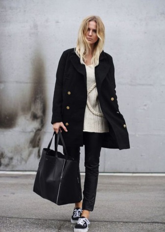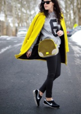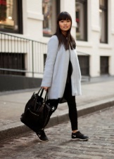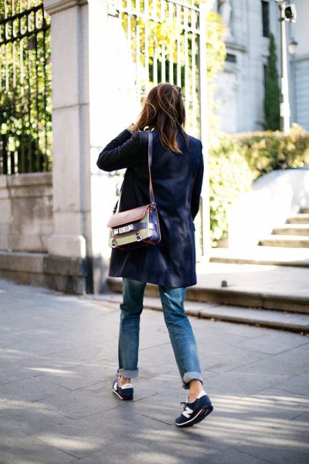 Sports shoes in combination with a coat is an extremely fashionable option. It is better if the coat is an oversized model. It has long been not fashionable to combine the color of the bag and shoes, this also applies to sneakers. Pick them up to match the main accessory is not worth it. Feel free to choose a classic bag or clutch bag for your sneakers and you won’t be mistaken.