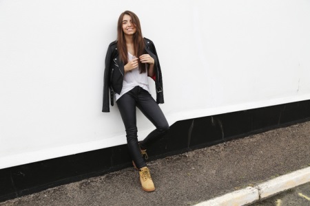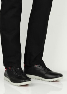 Sneakers of the well-known brand harmoniously combine with sports and urban-style clothing, such as jeans and T-shirts, jeans and a warm coat or jacket in dark colors, a brown or yellow parka.