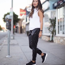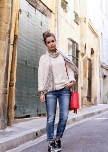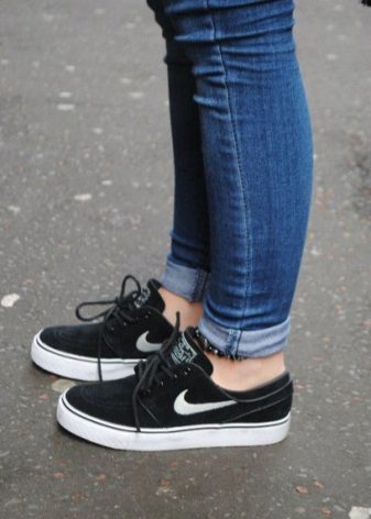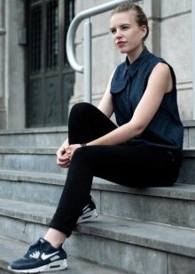 Also, do not forget about jeans, which have long been a familiar addition to sneakers. Jeans should be selected based on the "top". The most classic options will be narrow models or boyfriends who also do not give up their positions in the fashion world.