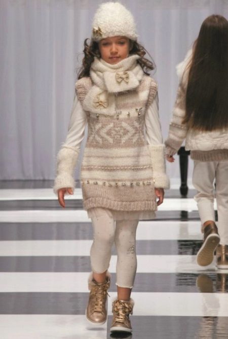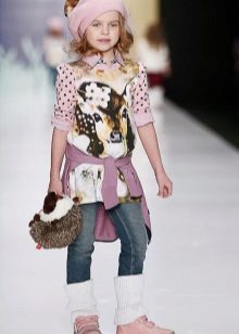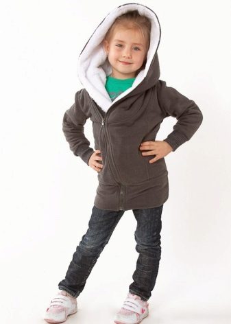 In addition to a wide fur strip, some models are decorated with appliqués, zippers or flowers, it all depends on the age group of fashionistas.