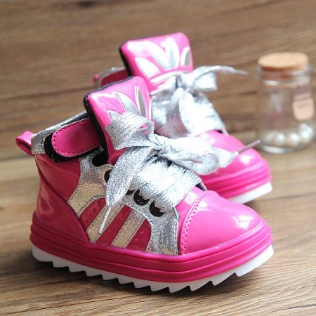 Fashionable and popular sneakers with LED inserts can also be warm. Decorated with rhinestones and insulated with fur, will be a wonderful gift for a little princess who will not be left without attention in them.