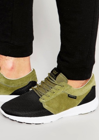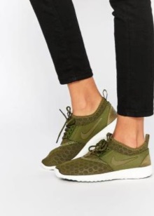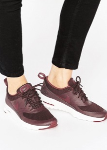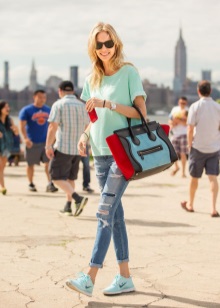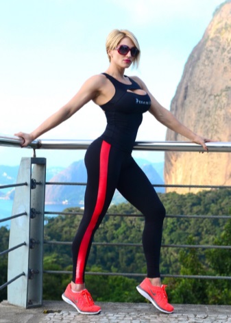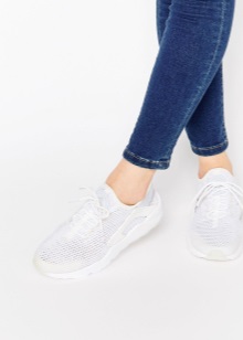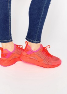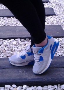 Most relevant, breathable sneakers look, of course, with a tracksuit, leggings, shorts, breeches, tight jeans. It is preferable to make the top “consonant”, that is, you should not wear a classic-cut blouse or jacket with such shoes. The olympic jackets, tops, shirts, t-shirts, hoodies, sweatshirts will be a great addition to the image. It is better to choose clothes in the same gamut, or vice versa - to play in cardinal contrast.