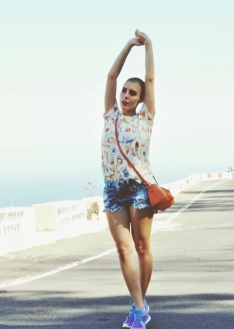 Universally, easily and naturally.Especially if the bottom is bright, an excellent pair will be a white T-shirt or print T-shirt. In this outfit, you can go for a walk, to meet friends.