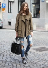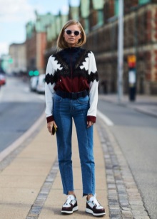 The top is selected according to the bottom, if you wear jeans - put on a shirt, sweater, pullover. T-shirt, T-shirt, sweatshirt, bomber jacket - a relevant pair of all of the above.