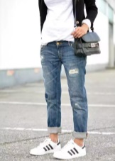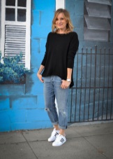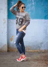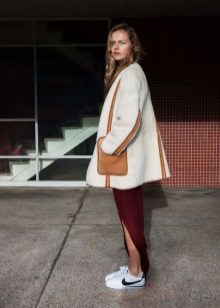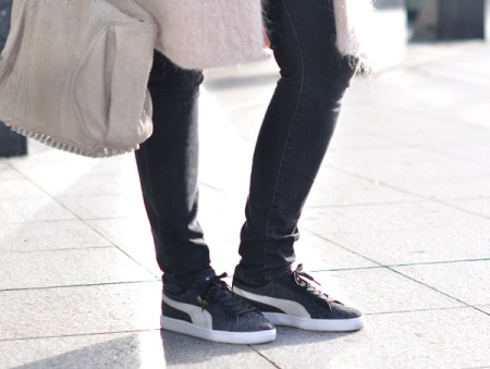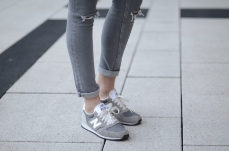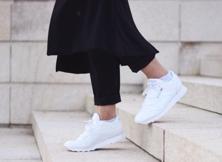 Classical sneakers for girls can be combined with midi skirts, classic two-piece suits, high jeans and shirt dresses. Some fashionistas experiment by combining sneakers with over size dresses or direct tailoring mini skirts.