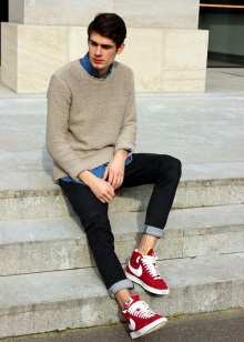 In the men's fashion classic sneakers Look great in casual style. Young people should pay attention to the combination of classic shoes in white or black with a fitted jacket and high trousers.