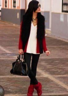 - with dark leggings; on top you can wear an elongated sweater in white or light beige;