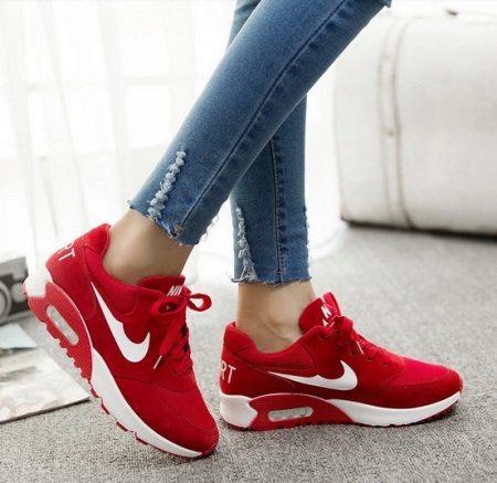 So, we made sure that red sneakers are just a godsend for fashionistas. With the right selection of clothes for them, you will not only look attractive and beautiful, it will also be very convenient for you in such clothes and shoes.
