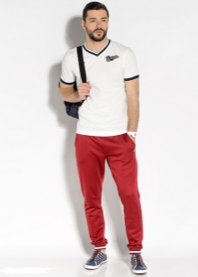 Color options are limited to three scales: white, red and blue. The geometric pattern in the form of squares of three colors in retro style fills the design with originality and sporting spirit.