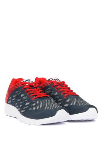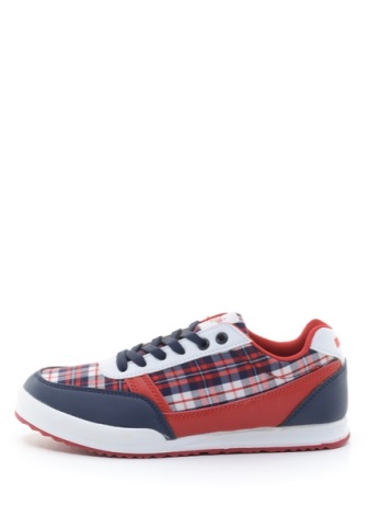 Sneakers are sports. This collection presents a combination of dark blue and red and an additional white color is observed on the sole, which gives expressiveness to the sneakers.The ornament in the form of white rhombuses combines dynamism and sportiness in the image.