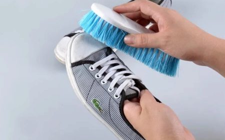 After training, be sure to wash off the dust and dirt from the sneakers. For a synthetic model, a sponge with a soapy solution is suitable. Shoes made of genuine leather can be cleaned using special tools.