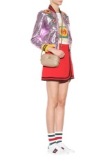 - Actress El Fanning is a fan of the brand, so she wears her Gucci Ace with a black concise dress, black bomber jacket and a gorgeous Gucci Dionysus bag.