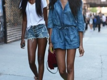- Singer Taylor Swift often chooses Gucci Ace for casual walks. This time she preferred sneakers, which are generously decorated with roses. She wears them with a concise jeans sundress, a pink T-shirt and a crossbody bag.