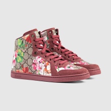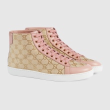 Gucci classic sneakers made of tapestry fabric with a repeating monogram made up of the brand logo. The model is trimmed with soft leather, usually brown. Also found in black, pink, burgundy, blue leather.