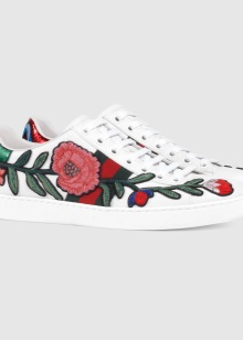 The new model of embroidered sneakers is very popular. These are white and black skaters who delight with their colorful and original decor.