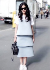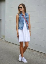 Sneakers in tandem with dresses of a straight or fitted cut look romantic and spectacular. The dress can be of different lengths - short or long. Often in combination with a dress, sneakers are worn on a bare foot.