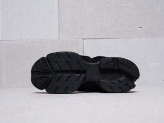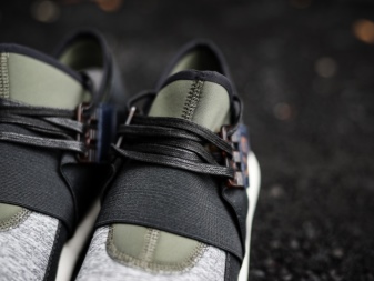 When creating a collection, the author sometimes resorts to using natural fabrics (fleece, cotton) and synthetic knitwear. Such a technological solution can increase the stability of shoes with a sharp change in polarity of movement. The use of seamless technology of the inner part provides comfort and protection of the leg from rubbing. A peculiar lacing system brings newness to the image of sports shoes.
