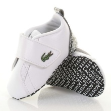 Lacoste sneakers are packed in a neat box with a minimalist design. Shoes are also wrapped in paper with a traditional brand logo.
