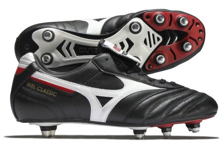 3. Rugby. This sport is very little known in Russia, but rugby sneakers have the right to be considered. The Mizuno brand has classic rugby boots made of natural material. They have a high shaft that fixes the foot very reliably, a durable studded sole with high flexibility and cushioning. Best suited for use on soft ground.