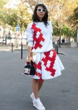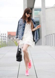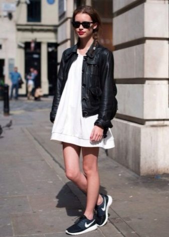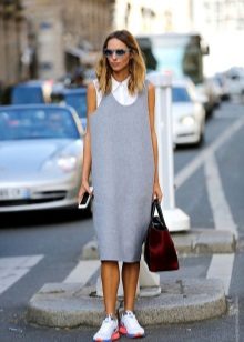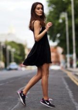 - Sports style does not always mean sloppiness and simplicity, it can be very feminine! For example, a stylish fitted dress with a free hem to the knee and a short sleeve will look very attractive with sneakers.