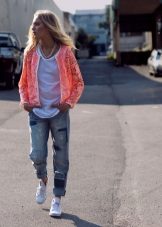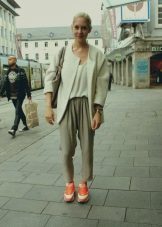 And bright coral-colored sneakers will not only be a bright detail, but also a kind of decor.