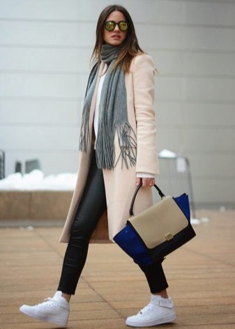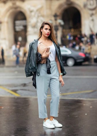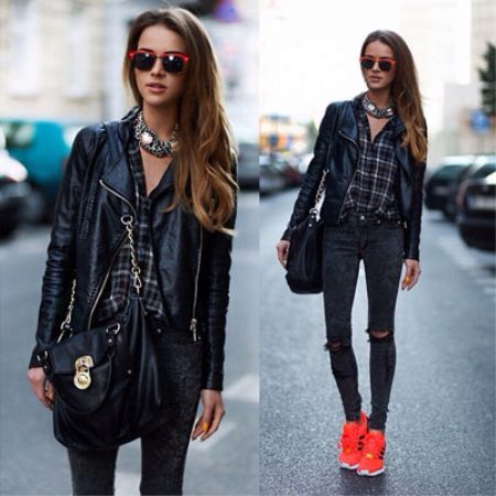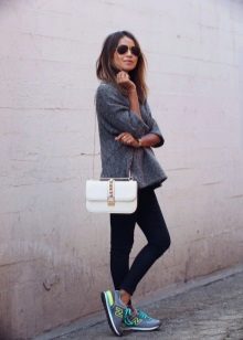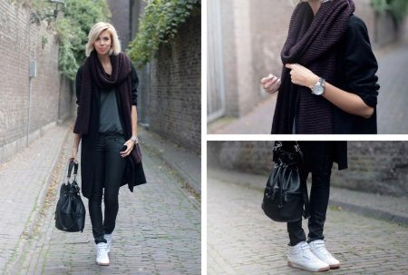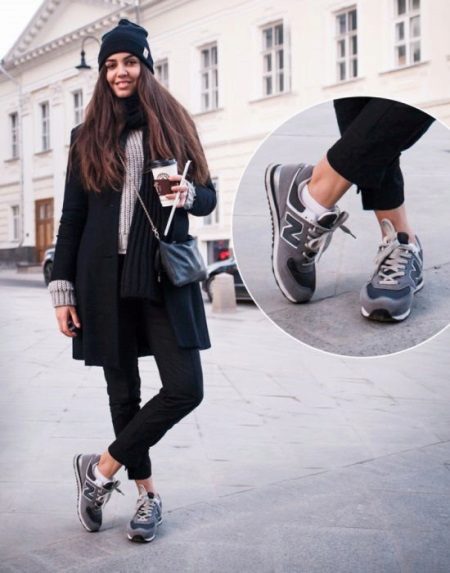 In addition, winter models of sneakers look pretty good with down jackets, sheepskin coats and various down jackets of shortened models. For the fall, leather jackets and wool coats are perfect, which, in combination with everyday models of sports shoes, will create an incredibly interesting look.