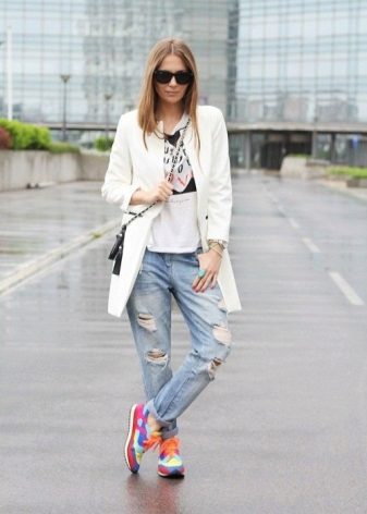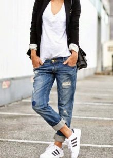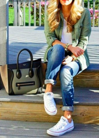 Sneakers of everyday models look good with tight trousers and jeans, complemented by various T-shirts and tops and stylish jackets. A mix of classic and sporty looks can be quite interesting.