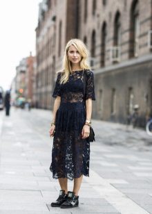 - A delicate look may also allow the appropriateness of some sports shoes. For example, a combination of a light flesh-colored chiffon top and a white lace skirt with a high waist, complemented by a light cotton midi-length cardigan can also look beautiful with sneakers.