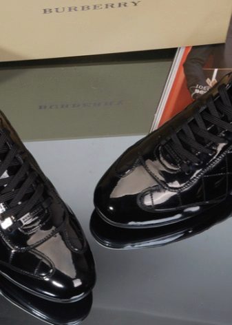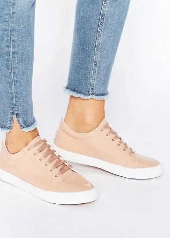 A model made of patent leather looks very interesting. Naturally, such sneakers are categorically not suitable for sports, since heavy loads will lead to quick damage to the product, but the model will become a chic everyday option.