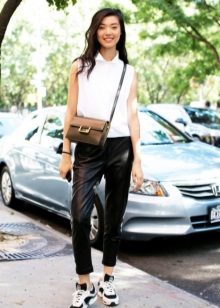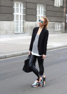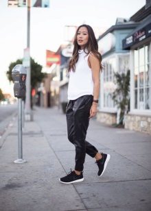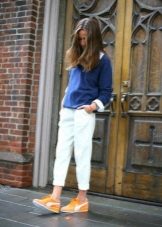 Fashionable sneakers in 2017 will make up the perfect pair of leggings and a shortened coat, straight trousers or skirts under the jacket, stylish jumpsuits for summer or autumn. You can create a chic look with sneakers if you add more elements to it in the style of a business casual. When creating a fashionable image, it is also worth playing with colors. For example, color trousers will go well with plain sneakers and vice versa.