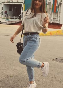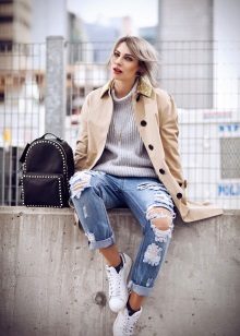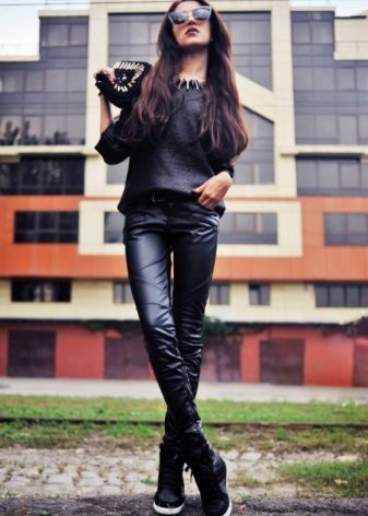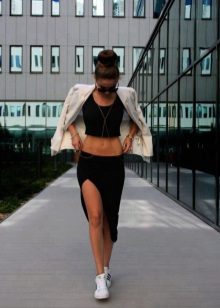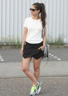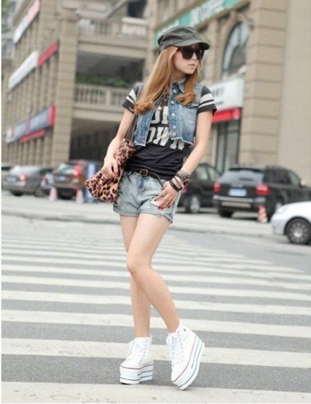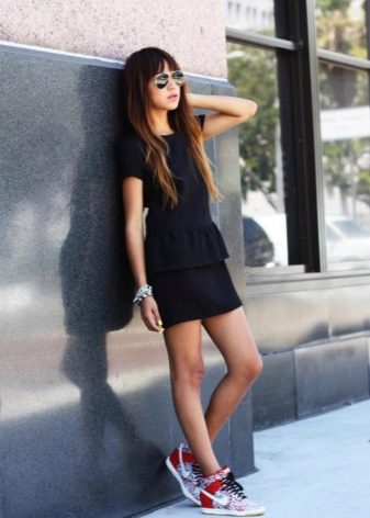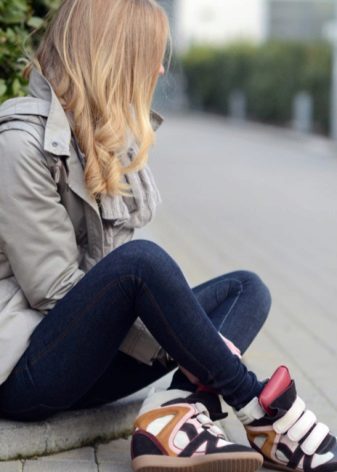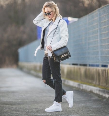 High models of sneakers. These sneakers can often be seen on girls under 30 in combination with frivolous skirts or tight-fitting trousers. As a successful combination to high sneakers fit culottes or a pencil skirt. The main thing is a matching wardrobe.