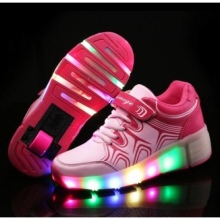 LED sneakers on wheels are popular among children and extraordinary youth. Glowing elements make the athlete more visible in the dark and lighten the mood for him and everyone else.