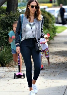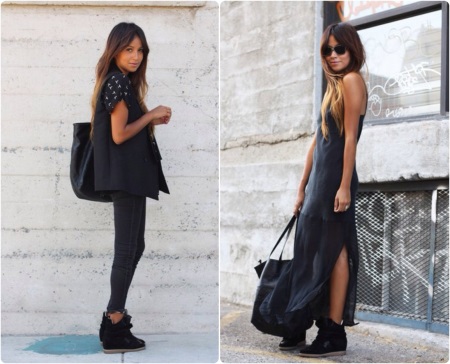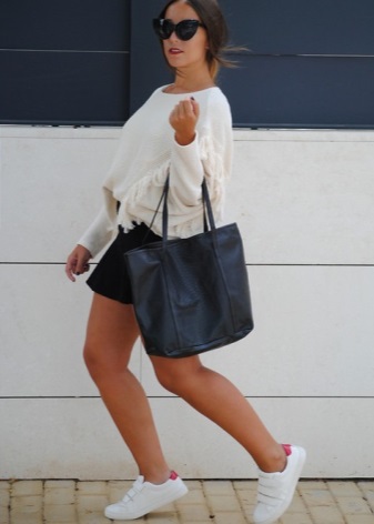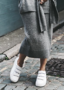 A short dress and sneakers look especially beautiful, which in the cool season can be a substitute for ankle boots.