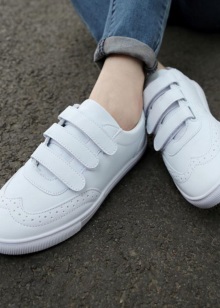 Women's models of Velcro sneakers on the platform will suit both classic shorts and a long skirt. Sneakers look great in tight jeans and leggings, denim mini-skirts. They are also worn with long dresses.