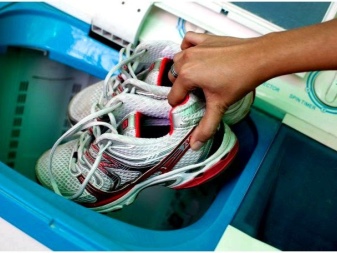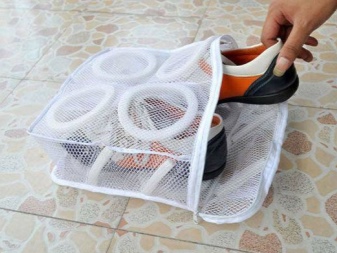 - Textiles are machine washed in a gentle manner so as not to damage the shoes. Tip - so that the shoes do not hang out inside the drum of the washing machine and do not create a rumble, get special bags for washing them.