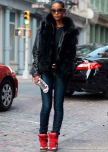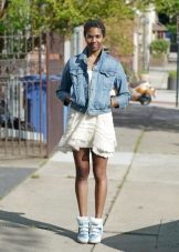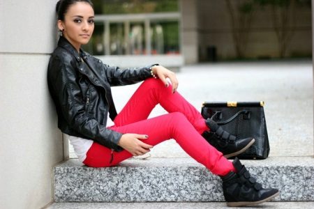 The most universal combination will be jeans, but only narrowed or pulled inside the platform sneakers. Any denim - shirts, short shorts, skirts, is also ideally suited to such shoes.