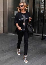 Sports shoes are combined with a small amount of clothing. Basically, it is sports or free style. Sneakers on the platform allow you to push the boundaries of compatibility of clothes of different styles with this type of shoe. And at the same time you can look one hundred percent, without sacrificing comfort and practicality.