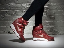 - Nike - high sneakers on the platform of this brand are comfortable and memorable style. The Nike Air Max model is characterized by a high platform due to a special insert. A model with shock absorbers on the heels, a convenient anatomical structure of the wedge lifts was developed. Models are found on a hidden platform, on a wedge heel, with different heights of the shoe, all-weather options.