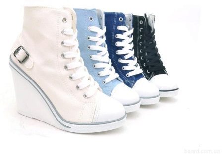 The advantages of sneakers and arrowroots include their convenience, variability with different styles of clothing - sports, leisure, urban or street, and even office. Such shoes always attract attention, visually adds growth and slimness.