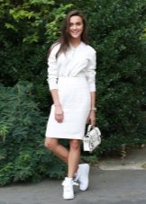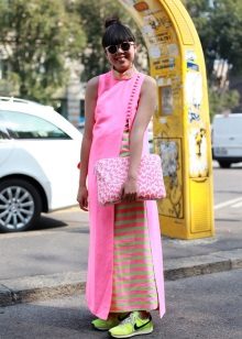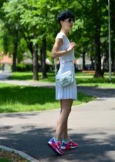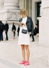 Lightweight sneakers can be worn under sports-style dresses. It is closer to youth fashion. Various combinations of clothes and shoes in a sports style bring novelty, dynamism and ease to the fashionable image. Therefore, such combinations are so popular among young people.