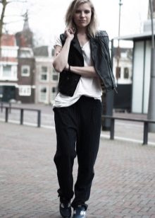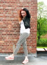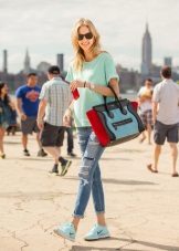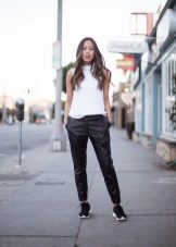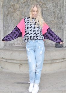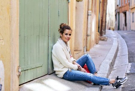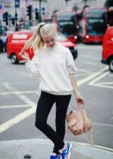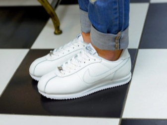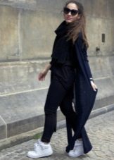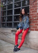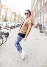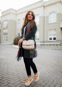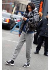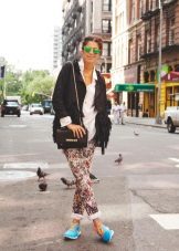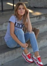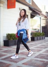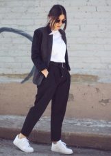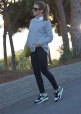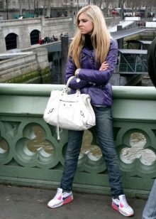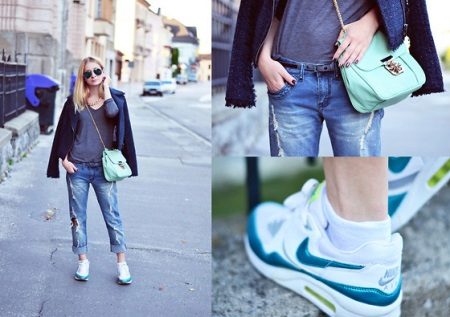 Men's and women's sneakers are worn under jeans. This is a classic of the genre. Today, sneakers go not only to fitness, but also to visit. Therefore, depending on the color of the sneakers, they can be worn with sports cut trousers selected in the corresponding color scheme. Fashion has become so diverse that today you can find the most unusual combinations of clothes and shoes on the streets. For example, stylish sneakers for a tweed suit.