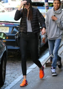 If orange sneakers are part of sports equipment, then a tracksuit, leggings or leggings with a shirt are perfect for them.