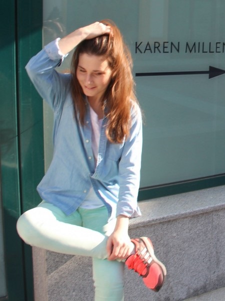 Sports style is one of the simplest, most convenient and comfortable of all the stylistic trends in fashion. That is why sports shoes are likely to be in every person’s wardrobe. These are ideal shoes for morning jogging, walking with children, trips out of town. The most popular models are black or white, due to its versatility. But, if you want to add a drop of bright, vibrant color to your everyday look, sneakers of saturated, rich tones come to the rescue.