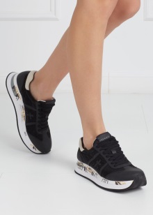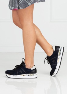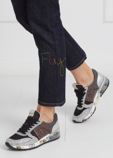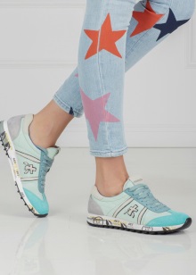 Lightweight summer Premiata G1336 suede sneakers for active sports girls and women. The “leaky” breathable upper, bright white laces and a traditional premium rubber sole with a print make this model especially attractive. And its low cost cannot but please the economical hostesses - only 7,500 rubles for a pair of sneakers.