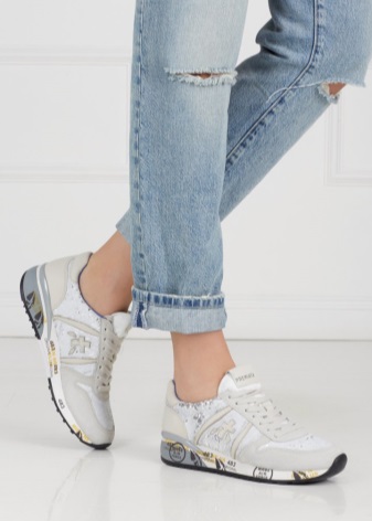 This is a unique Italian model line, which was invented for young people by the heart and soul of active people. Premiata White, according to the comments of the manufacturer itself, is a kind of creative peak of the company. This is a whole complex of men's, women's and unisex models of sneakers that differ from the rest in pronounced white color. The main emphasis is placed on him. White is slightly shaded by the tenderness of gray, beige and brown.