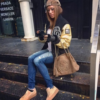 The fair sex really likes branded products; they are worn not only with jeans, but also with elegant dresses.